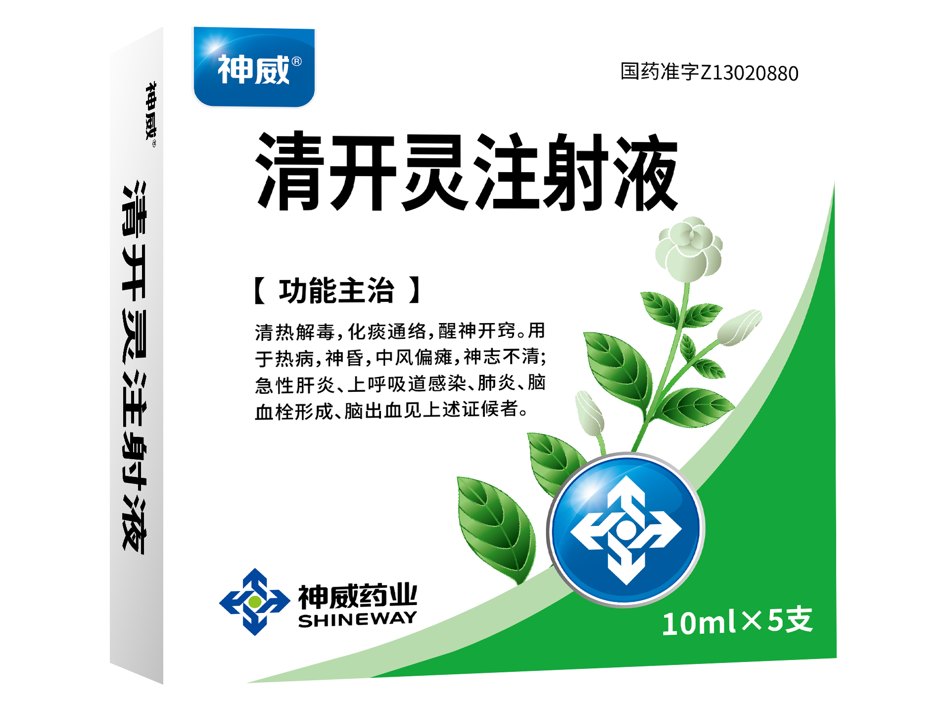 清热解毒,化痰通络,醒神开窍。用于热病,神昏,中风偏瘫,神志不清;急性肝炎、上呼吸道感染、肺炎、脑血栓形成、脑出血见上述证候者。