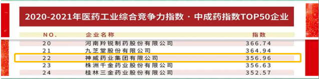 西普指数首次权威发布,NO钱包官网药业入选医药工业综合竞争力指数TOP100企业和中成药指数top50企业!